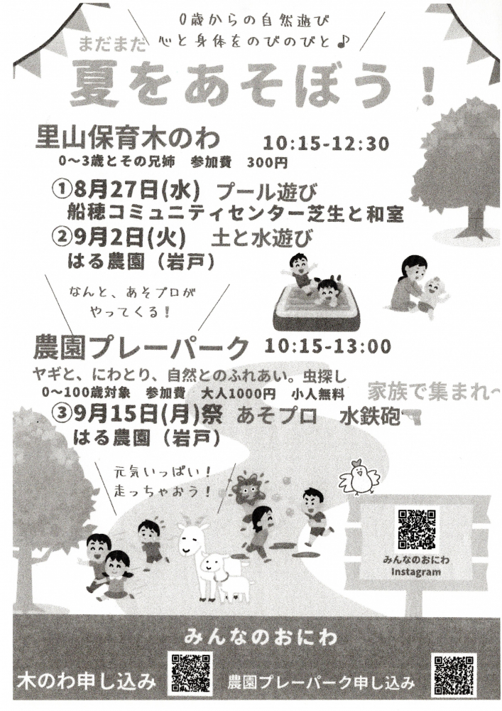 「里山保育木のわ」と「農園プレーパーク」のお知らせです