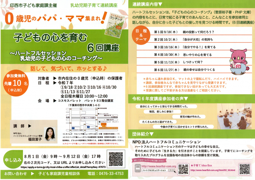 子どもの心を育む6回講座~ハートフルセッション 乳幼児の子どもの心のコーチング~